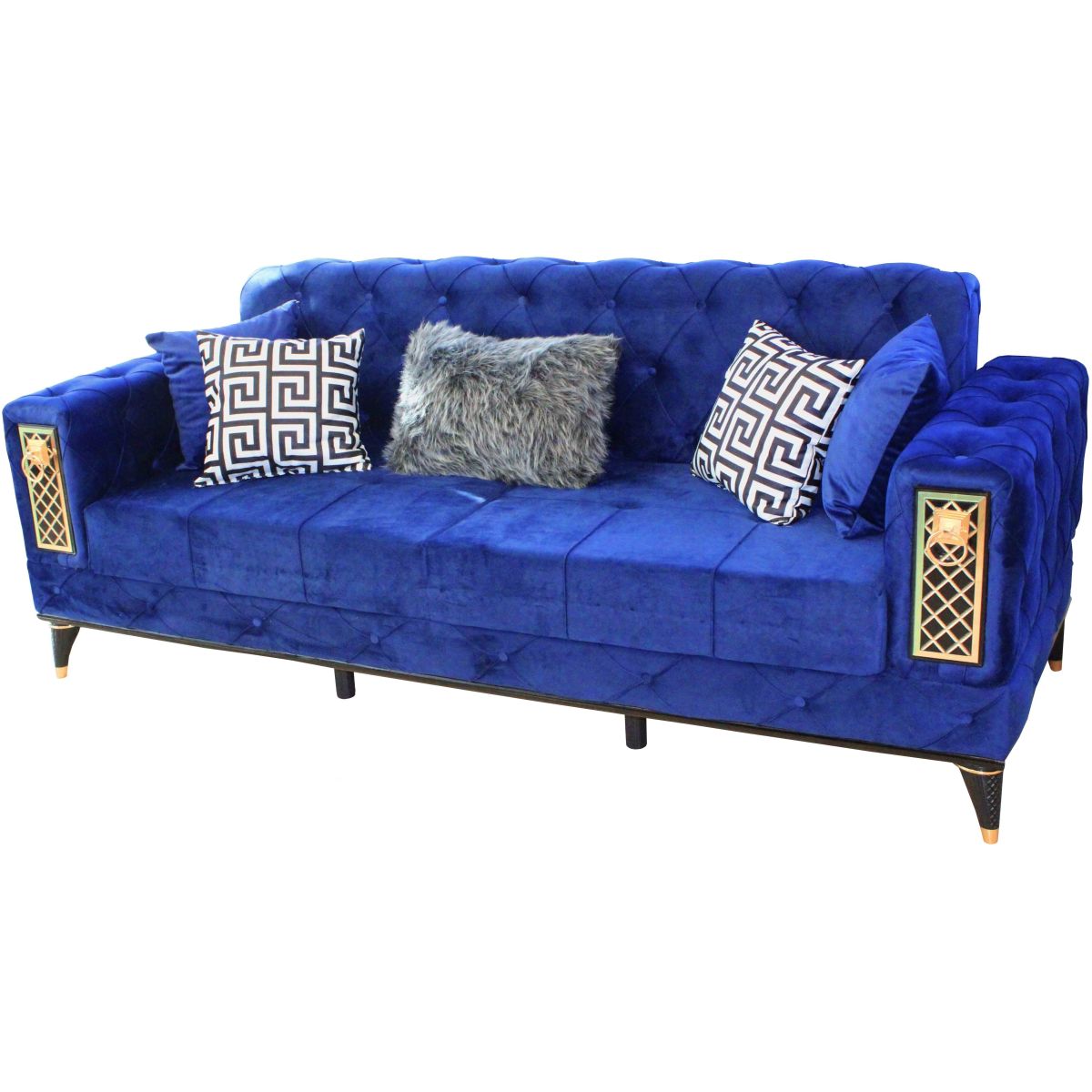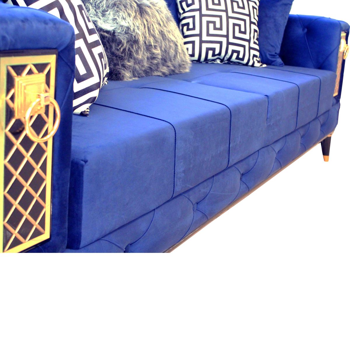 Canapeaua cu insertii aurii pastreaza ornamentele clasice, traditionale si le imbina cu o nuanta vibranta care incanta privirile tuturor.