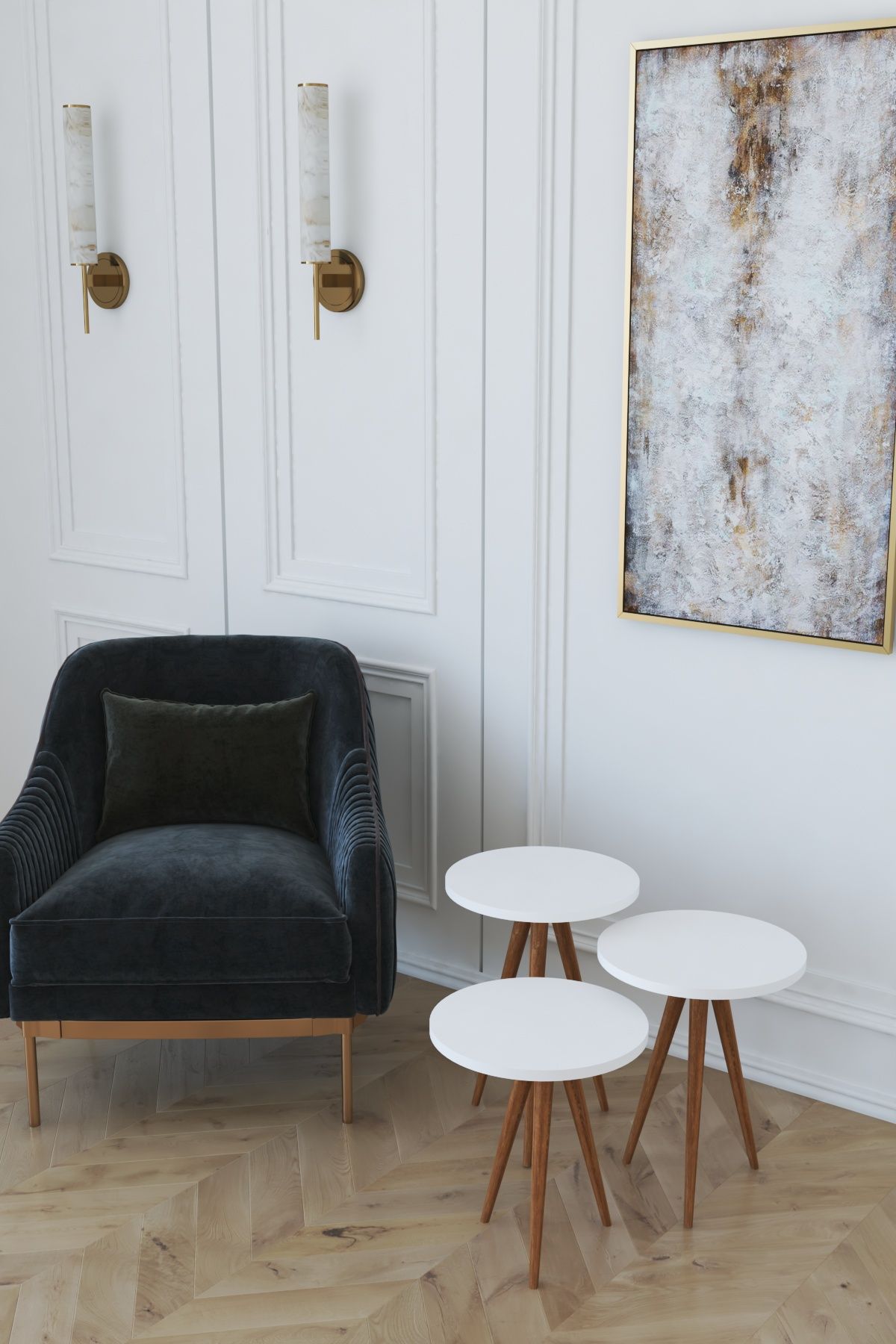Cu un set format din 3 mese de cafea rotunde poti sa obtii un cadru personalizat, in functie de locul in care te afli. Poti muta masa langa canapea, fotoliu, sau pe terasa. Astfel, poti sa-ti pui cafeaua, ceaiul sau micul dejun si gustarile mai aproape de tine. Atunci cand nu le folosesti, ele pot servi ca suport decorativ pentru flori, telecomanda si alte accesorii eletrice pe care le folosesti langa televizor.