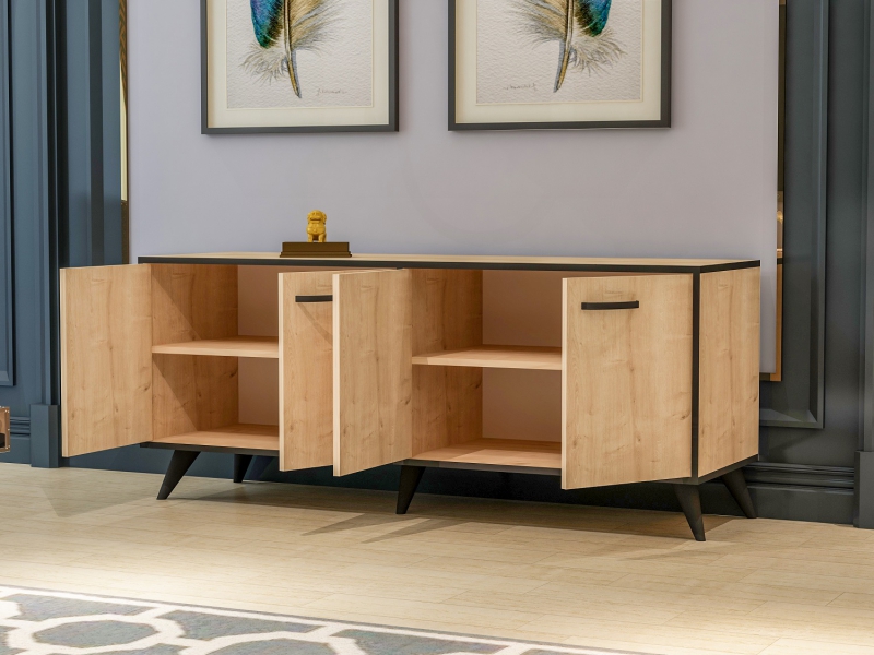 Daca vrei sa t uiti la TV si sa-ti aranjezi si alte haine sau cosmetice, atunci trebuie sa incluzi si o consola cu 4 usi pentru dormitor.