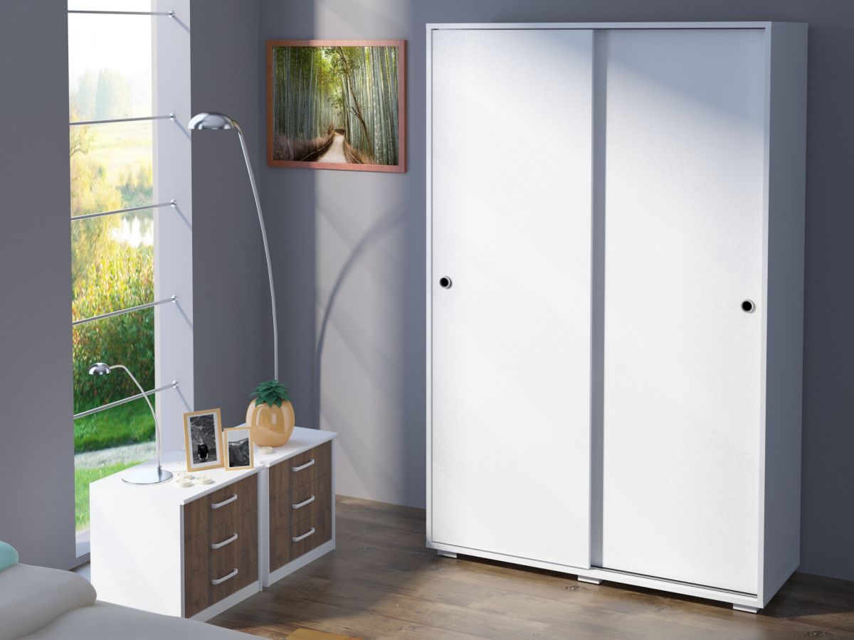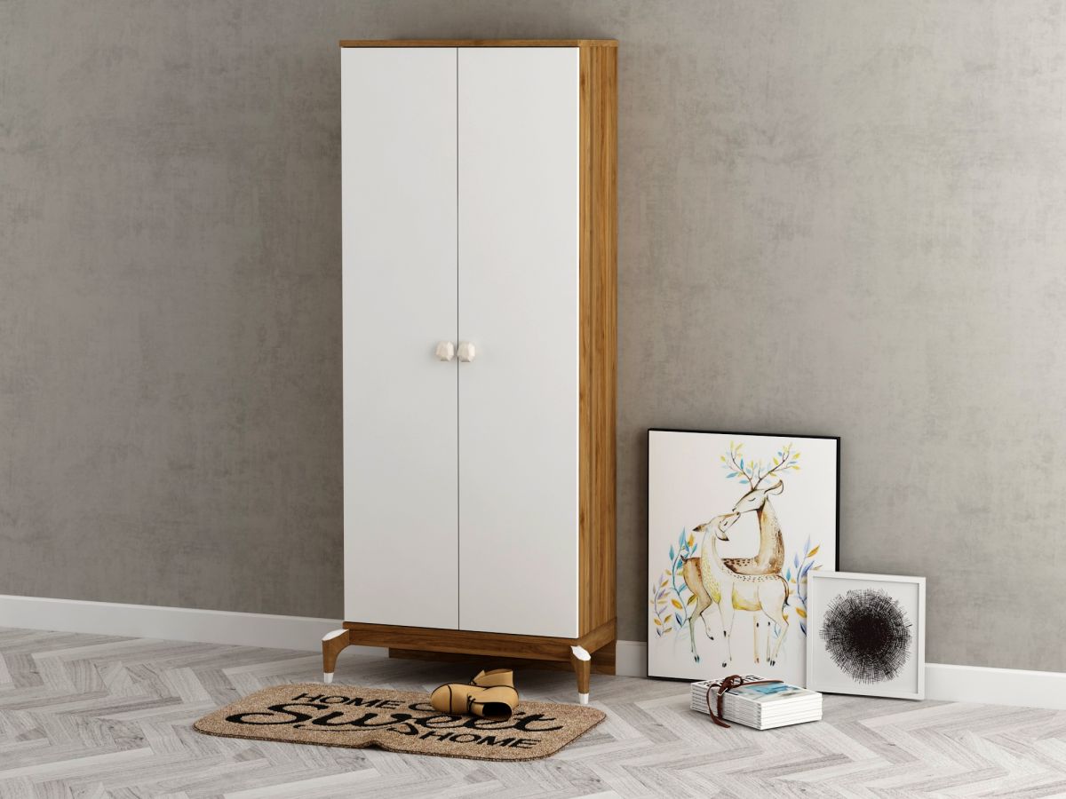 Hainele celor mici pot fi usor aranjate intr-un dulap cu 2 usi alb si nuc.
