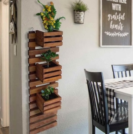 Daca ai un living amplu, poti sa ii redai un aer fresh cu o polita suspendat cu 3 compartimente separate pentru flori.
